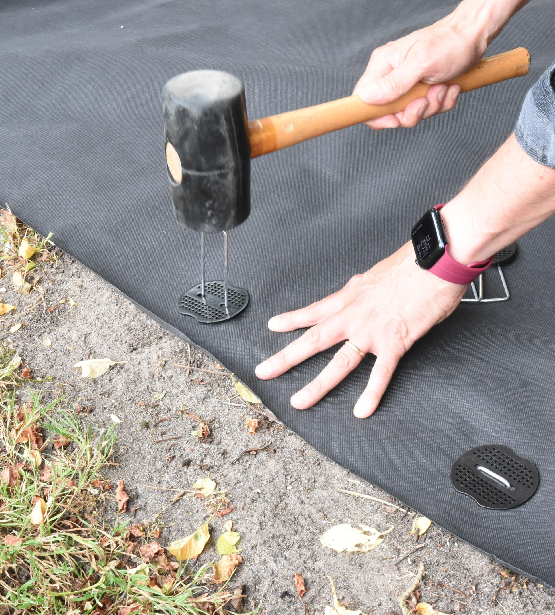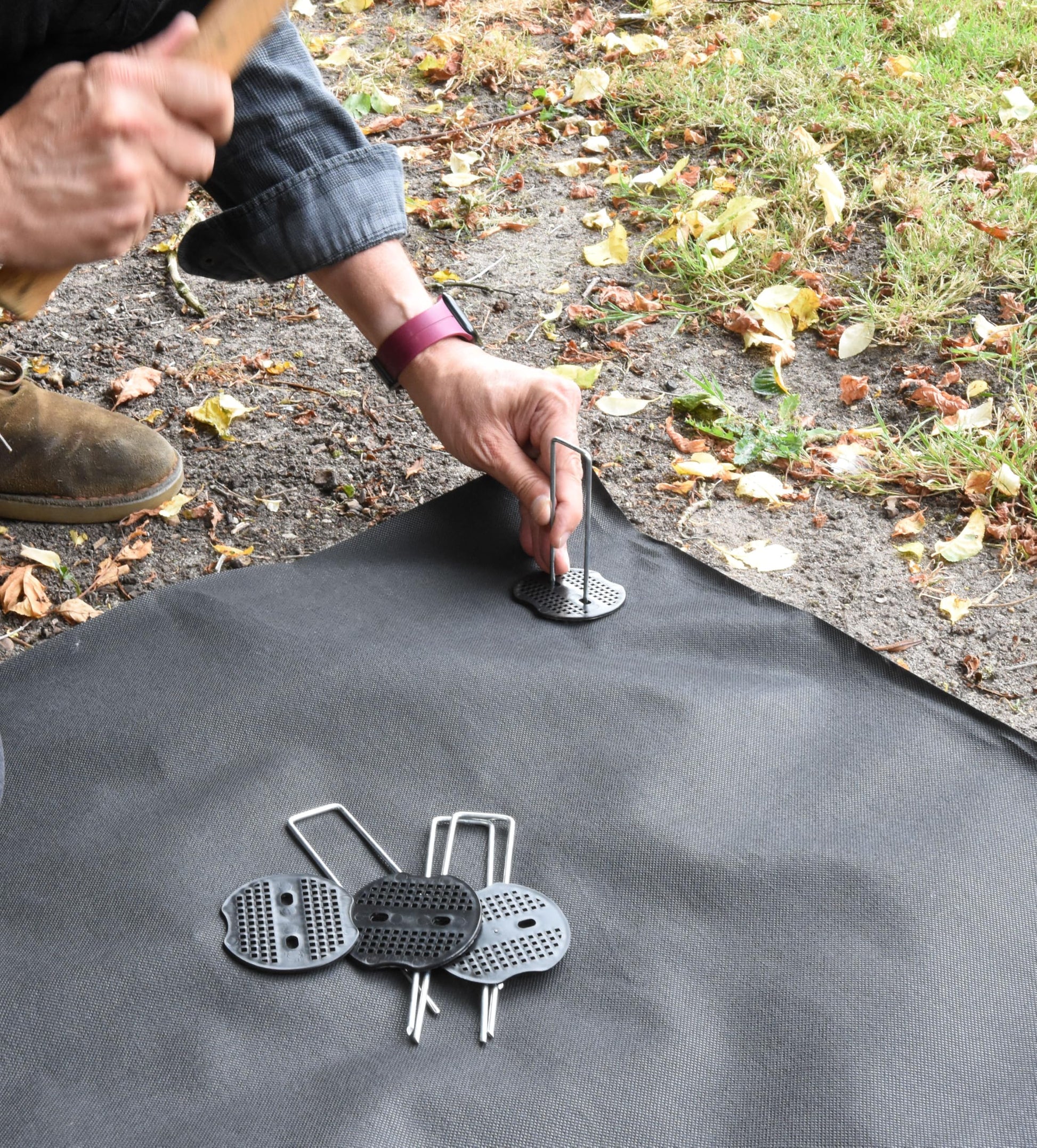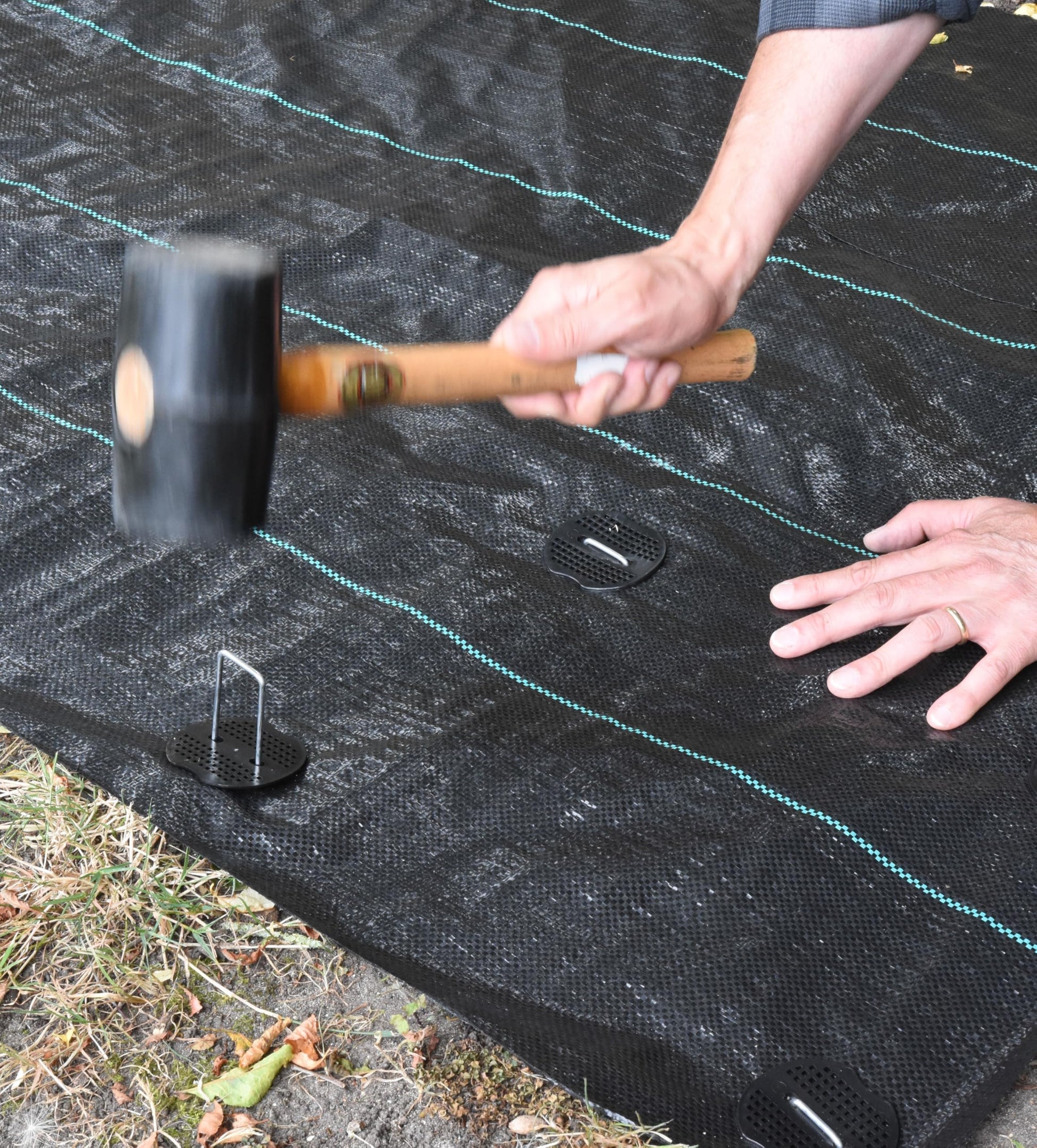 - Is as simple as placing the roll or sheet on your pre-levelled surface and rolling it out, securing the membrane with ground pegs, the coloured guide lines allow for easy alignment so you can maintain your orientation. It is easily sized to suit the area that needs the weed suppression membrane benefits.
